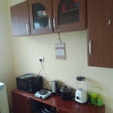 Fully equipped kitchenette – Includes a refrigerator, microwave, stove, coffee maker, and essential cookware for self-catering.